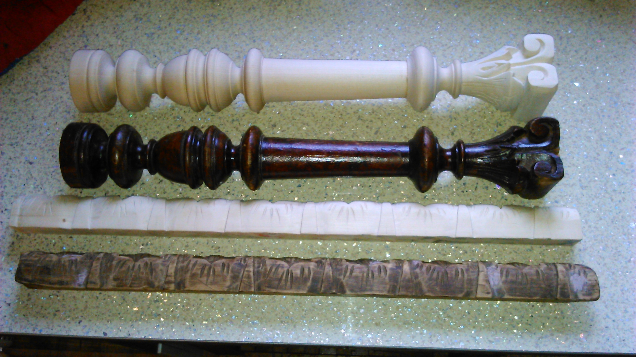 Надо заменить поврежденные древоточцем детали. Жучек съел нижнюю обвесь комода почти полностью, осталась только внешняя форма.